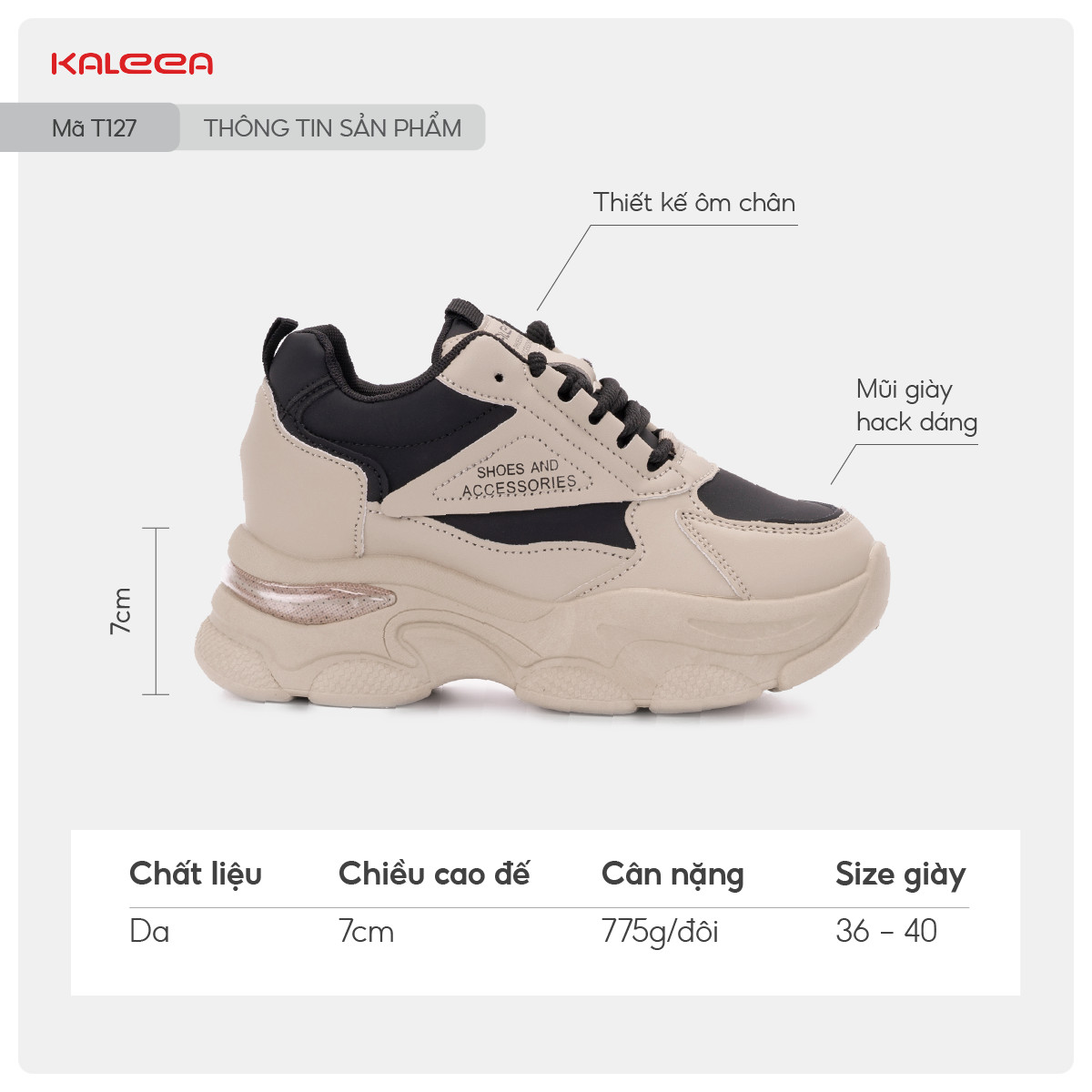 Đế giày : Cao su non độn đế 7cm